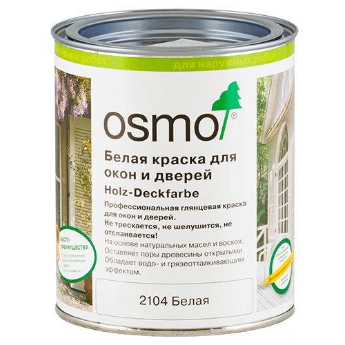 Белая краска для наружных и внутренних работ Osmo Holz-Deckfarber идеально подходит для любых пород древесины, где требуется новое покрытие или обновление существующего покрытия, для недеформирующихся деревянных элементов и конструкций: окон, оконных ставней, дверей, а также деформирующих деревянных элементов и конструкций: заборов, пергол, перегородок, дверных косяков, садовых павильонов, теплиц, садовой мебели.