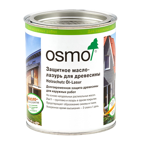 Масло-лазурь для дерева Osmo легко наносится, не засыхает в процессе окрашивания. Для обновления поверхности просто нанесите новый слой масла поверх старого (без шлифовки и грунтовки). Также масло обеспечивает профилактическую защиту от синевы, плесени, гнили, имея биоцид (антисептик) в составе.